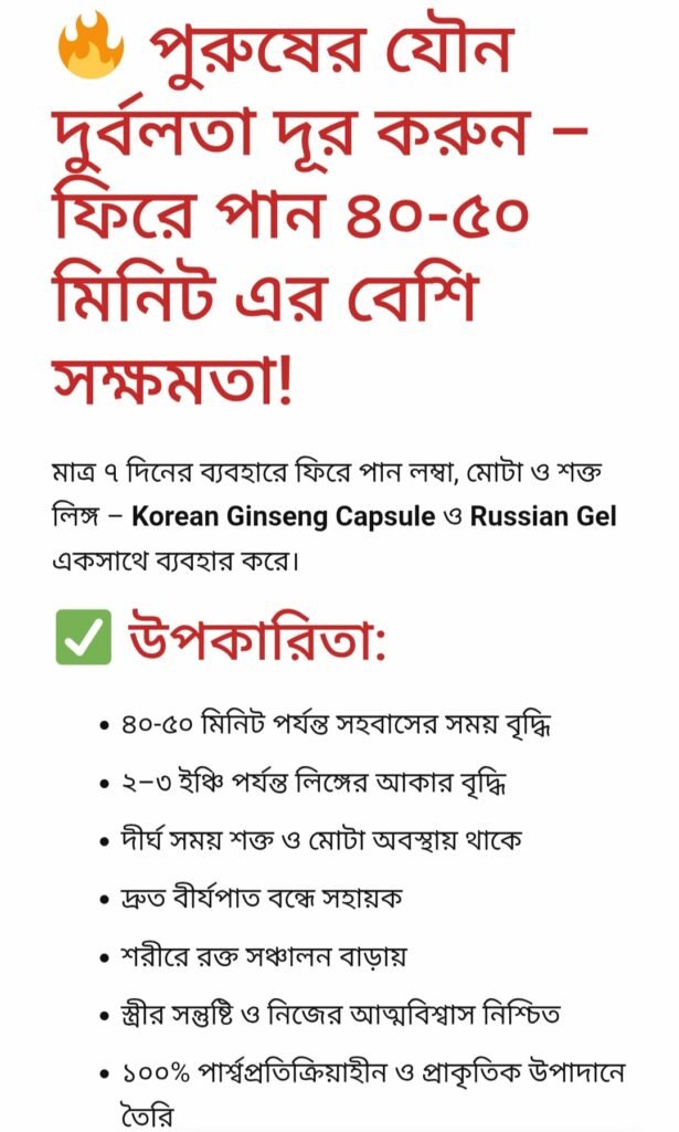 5.পুরাপুরি শক্ত হয়না এমন গোপনাঙ্গ স্থায়ীভাবে শক্ত করবে।